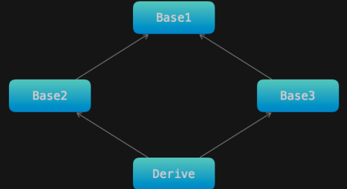 派生类 继承自Base2,Base3这两个类有共同的祖先类Base1
