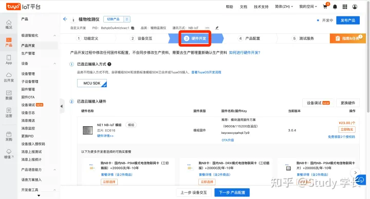本方案中默认选取了涂鸦智能NE1模组,我们拿国内的另外的NB-IoT模组来对比一下。