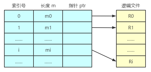 对于可变长记录文件,要找到第 i 个记录,必须先顺序第查找前 i-1 个记录,搜索效率较低。为了解决这个问题,可以为变长记录文件建立一张索引表,为主文件中的每个记录在索引表中分别设置一个表项,记录指向记录的指针以及记录的长度 L。索引表本身是定长记录的顺序文件,因此可以快速找到第 i 个记录对应的索引项。