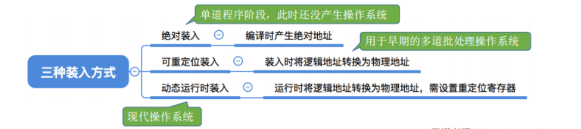 地址重定位有三种形式:绝对装入、静态重定位、动态重定位