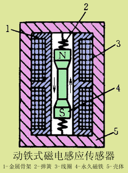 恒定磁通式磁电感应式传感器按运动部件的不同可分为动圈式和动铁式。动圈式磁电传感器的中线圈是运动部件,基本形式是速度传感器,能直接测量线速度或角速度,如果在其测量电路中接入积分电路或微分电路,那么还可以用来测量位移或加速;动铁式磁电感应式传感器的运动部件是铁芯,可用于各种振动和加速度的测量。