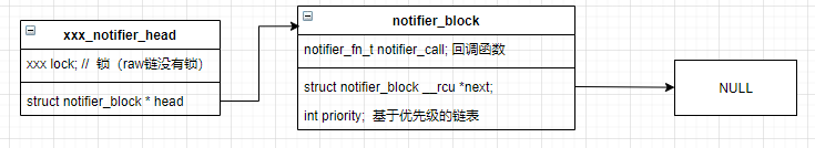 实现基于 事件和 优先级, 优先级越高越快(notifier_chain_register 链表添加时遍历优先级,priority 高的插在链表前边)