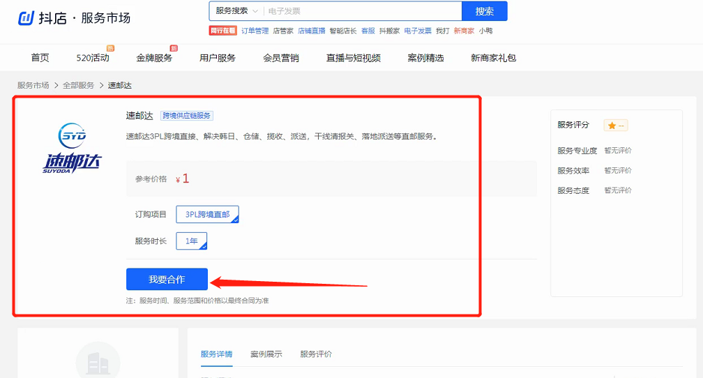服务商与商家签订合同,用于后续商家在平台后台上传;商家联系平台商服告知需要帮审核开通《青岛润亨丰国际贸易有限公司》服务商——-商服审核通过后,商家可以在后台看到订购界面如下图:服务商管理—-我的申请—-申请服务——待服务商接单