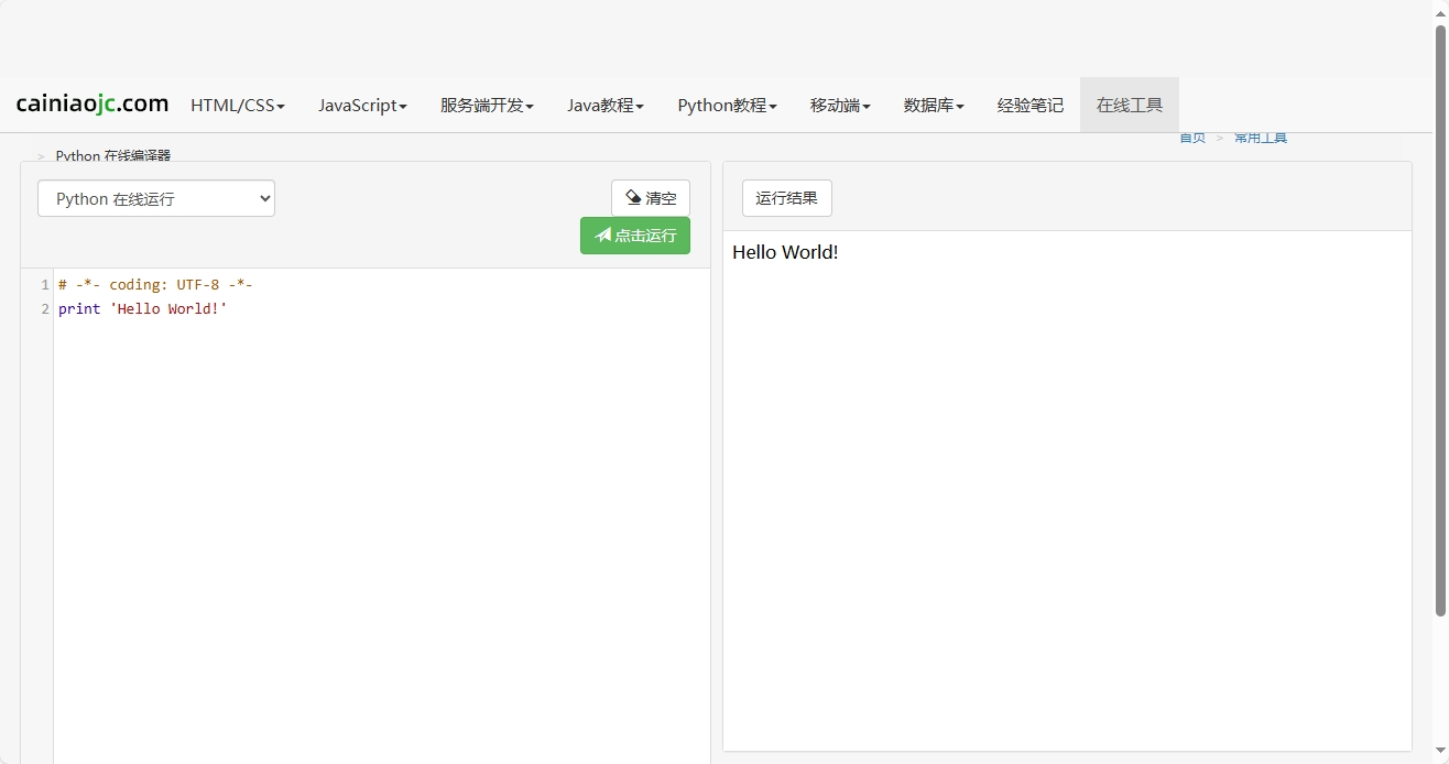 https://www.cainiaojc.com/tool/python/