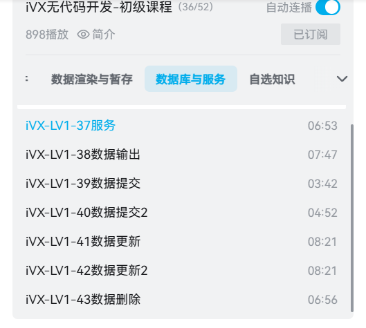 iVX可视化编程课-LV1-28-01-83数据库iVX可视化编程课-LV1-32-01-92数据输出iVX可视化编程课-LV1-33-02-93数据提交2iVX可视化编程课-LV1-34-01-97数据更新 iVX可视化编程课-LV1-28-01-83数据库 作用 后台组件 服务 三要素 10+ 右侧添加 iVX可视化编程课-LV1-32-01-92数据输出 类型,选择、输入 参数-筛选 返回参数 解析 后台-前台,触发事件 iVX可视化编程课-LV1-33-02-93数据提交2提示语 对象变量、数组 +失败原因 iVX可视化编程课-LV1-34-01-97数据更新22