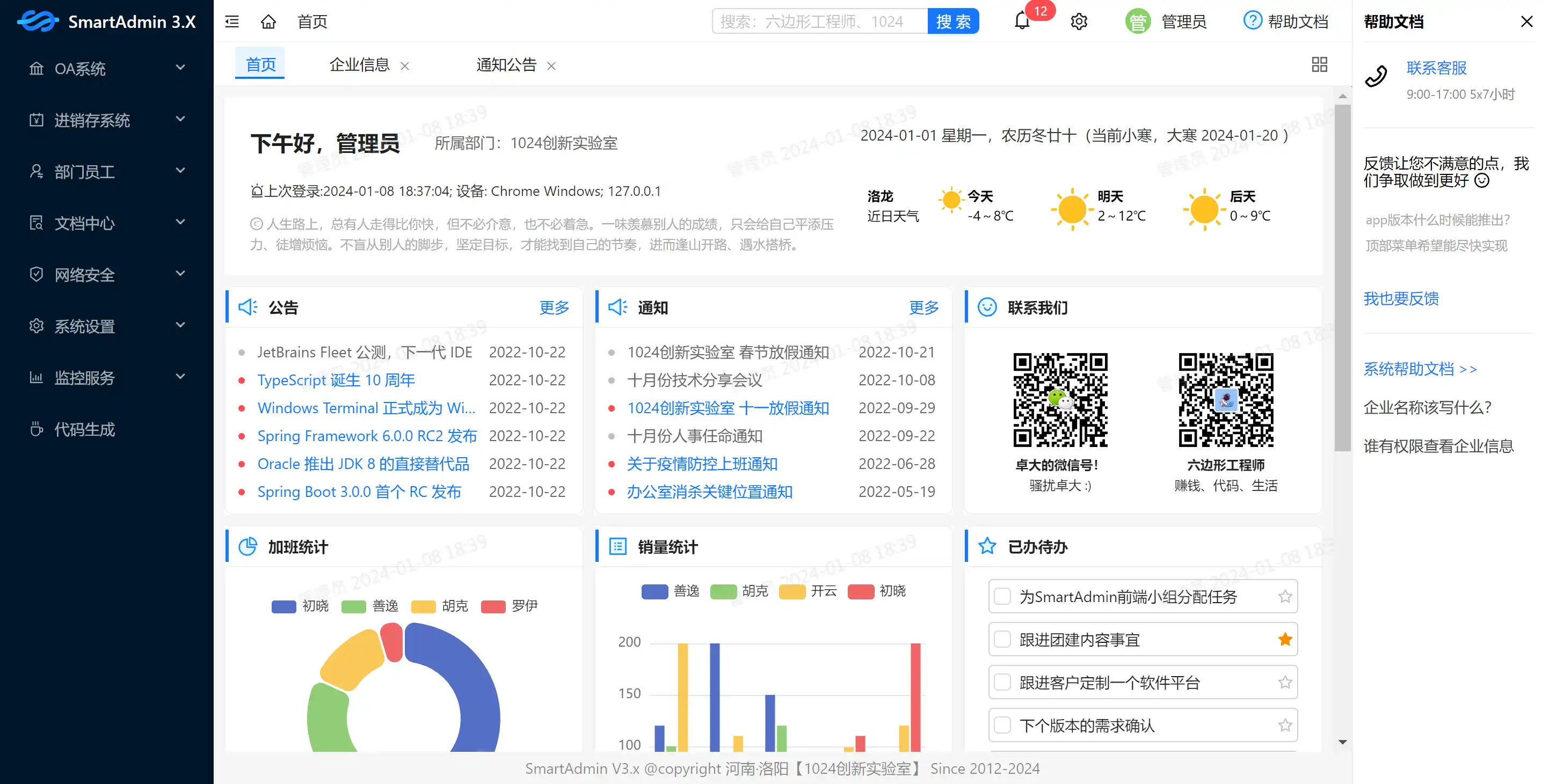 SmartAdmin 由 中国·洛阳 1024创新实验室 基于SpringBoot2/3+Sa-Token+Mybatis-Plus 和 Vue3+Ant Design Vue+Uni-App+Uni-UI,并以 「高质量代码」为核心,「简洁、高效、安全」的快速开发平台。