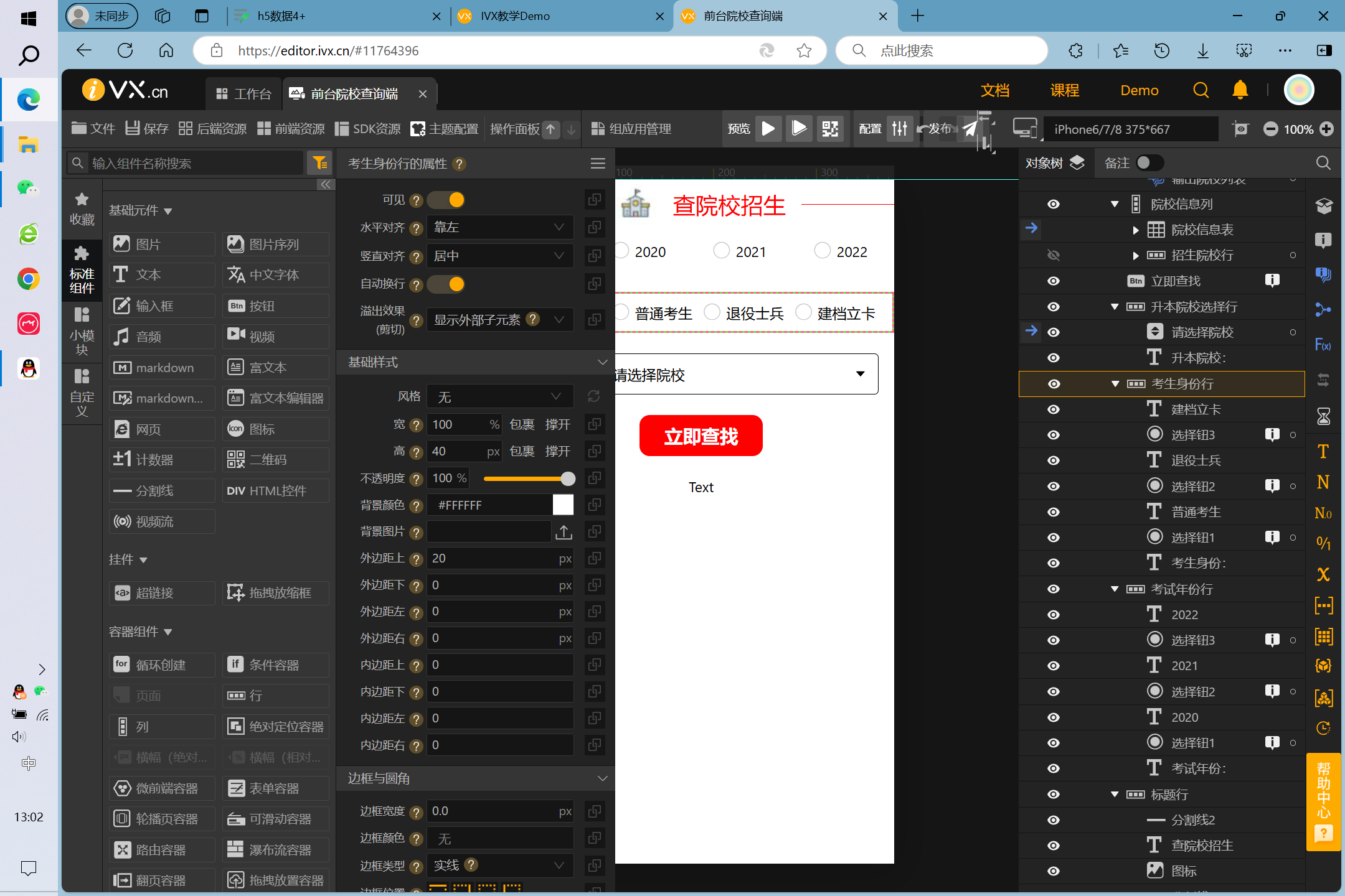在后台添加对数据库的查询服务,服务的接收参数为前台检索时提交的院校名称、考生年份、考生身份。返回的查询结果存入到一个对象数组中,在前台添加一个表格,数据来源选择为该对象数组。查询成功则显示该表格即为查询结果,查询失败则提示失败原因。
