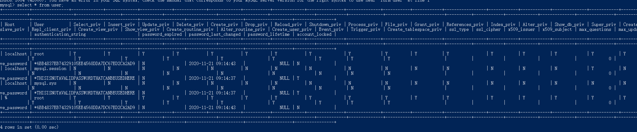 4) select * from user;