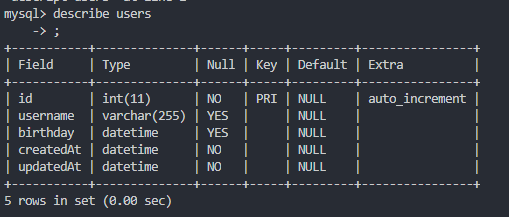 我们创建的是user,但是数据库的是users,应该是sequelize封装了,加了s。