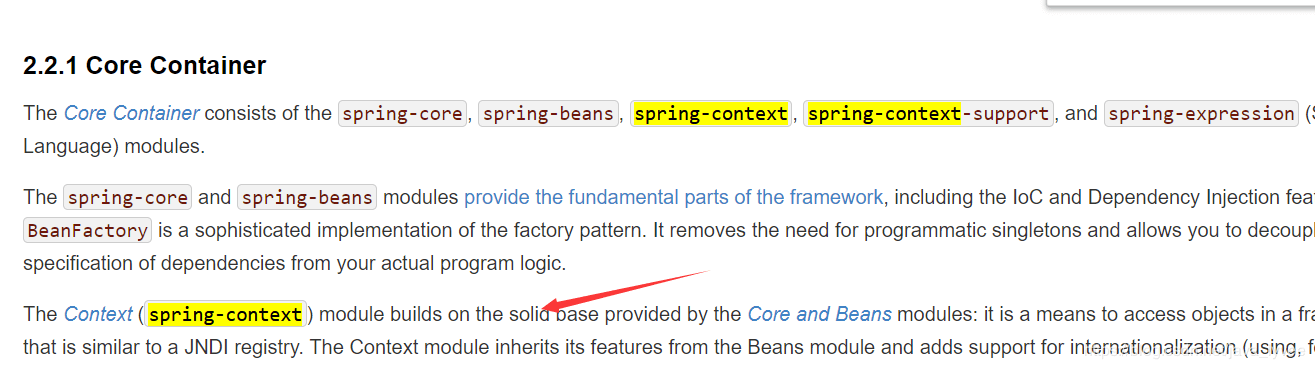 The Context (spring-context) module builds on the solid base provided by the Core and Beans modules