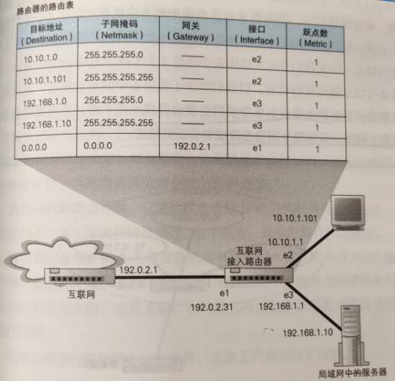 转发模块会根据收到的包的IP头部中记录的接收方IP地址,在路由表中进行查询,判断转发目标