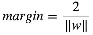 直观上,超平面B1B1的分类效果更好一些。将距离分离超平面最近的两个不同类别的样本点称为支持向量(support vector)的,构成了两条平行于分离超平面的长带,二者之间的距离称之为margin。显然,margin更大,则分类正确的确信度更高(与超平面的距离表示分类的确信度,距离越远则分类正确的确信度越高)。通过计算容易得到: