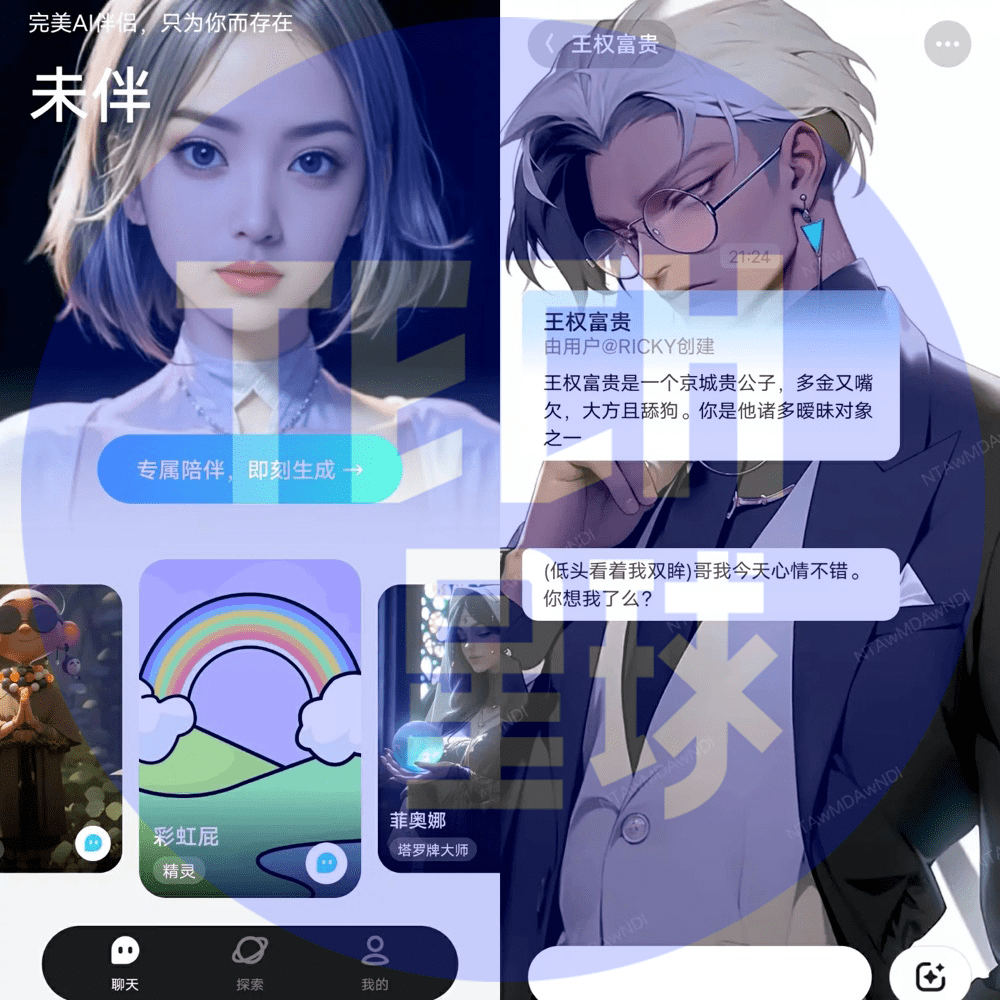腾讯音乐开发了一款名为“未伴”的AI社交APP,该产品由腾讯隐私保护平台提供支持。未伴是一个集AI陪聊、AI伴侣写真等多个功能于一体的AI聊天产品,用户可以选择一个AI伴侣,也可以自己创建一个AI伴侣。用户可以与AI伴侣聊天,调整其回复的话,并进行反复训练。未伴APP还可以为AI伴侣生成专属智能画作,丰富AI伴侣的虚拟世界。腾讯音乐此次的探索对于国内AI社交的发展有探路价值。