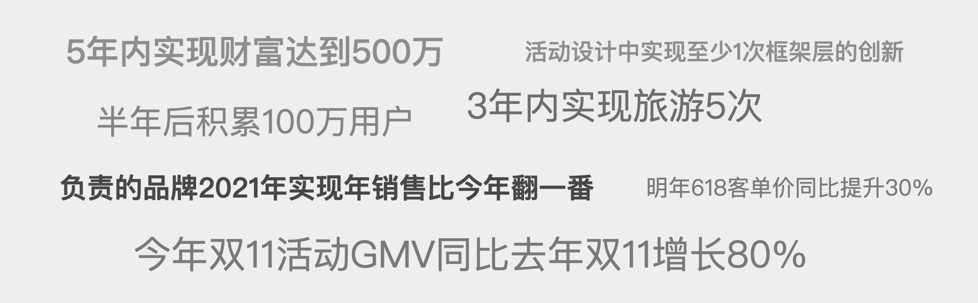 上述的这些即是目标,符合SMART原则的规范要求,具有一定的实操性。