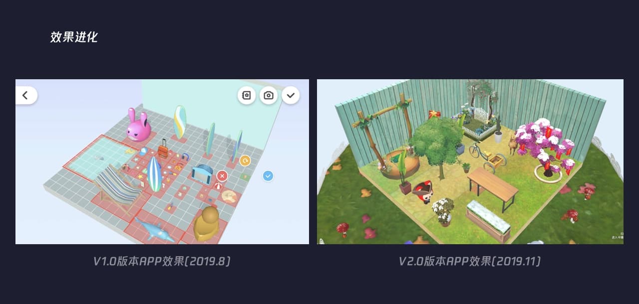 为寻求突破,目前3D厘米秀的核心玩法孵化了包括捏脸,换装,收集和小窝DIY,而区别于同类竞品的核心优势是3D小窝DIY功能,所以我们在前期内容设计上花费了很大的精力来强化我们的核心玩法。