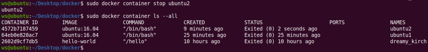 sudo docker run -dit --name=ubuntu2 ubuntu:16.04