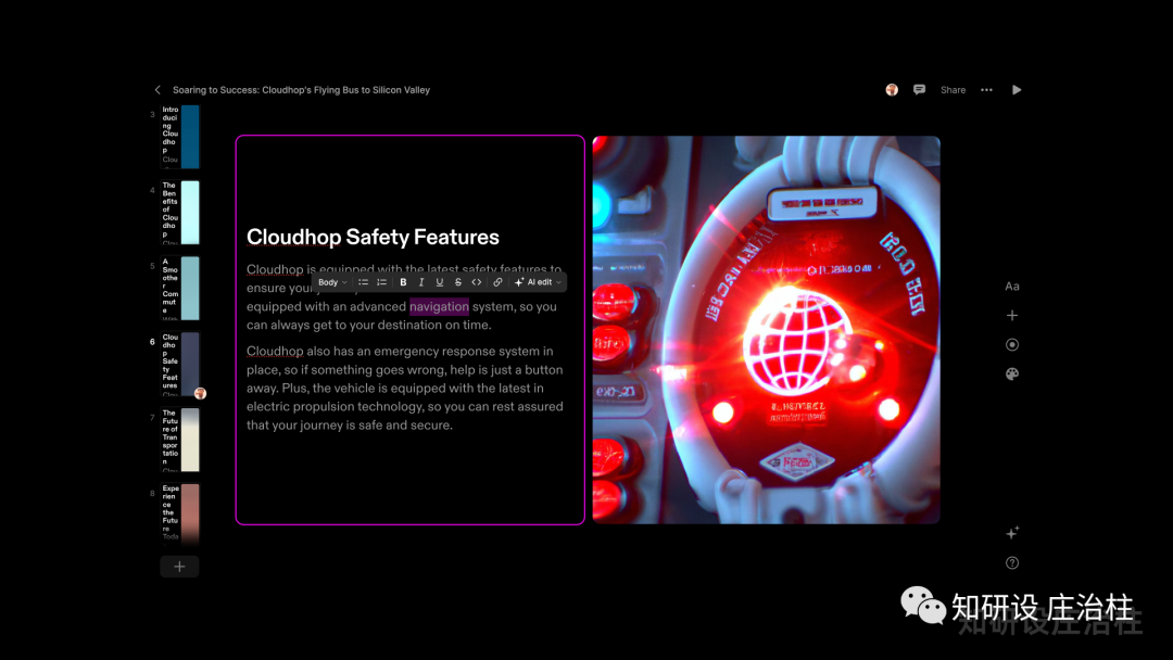 下面是我通过tome这个网站输入一个想法之后,在几秒钟自动生成的PPT,而且这个PPT支持在线编辑,修改图片等,也可以利用第三方插件生成内容并替换,是不是很厉害