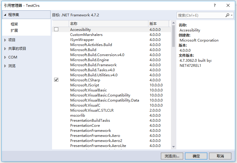 由于全局 CSC.rsp 文件引用了列出的所有程序集,所以不必使用 C# 编译器的 /reference 开关显示引用这些程序集。这个响应文件为开发人员带来了极大的方便,因为可以直接使用 Microsoft 发布的各个程序集中定义的类型和命名空间,不必每次编译时都指定 /reference 编译器开关。