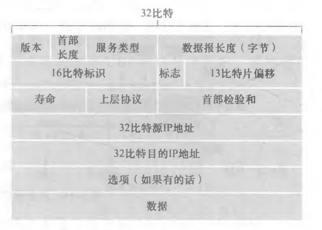 - 数据(有效載荷)。我们来看看最后的也是最重要的字段,这是数据报存在的首要理由!在大多数情况下,IP数据报中的数据字段包含要交付给目的地的运输层报文段(TCP或UDP)。然而,该数据字段也可承载其他类型的数据,如ICMP报文。