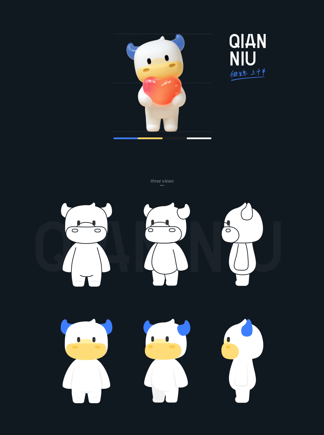 经过数轮设计提案后,结合定位、符号化、色彩三原则,锁定千牛形象分别为“招财牛、潮酷牛、专业牛”。
