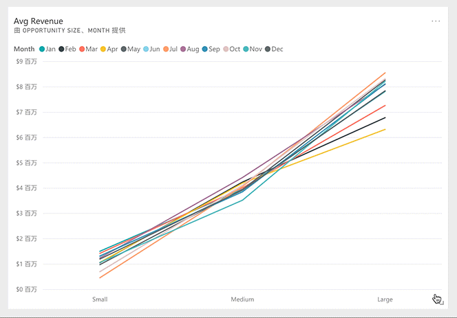 极限值的规范使图表在一定范围内进行适配,呈现较好的展示方式。除了划定极限范围,还要描述如果超出极限应如何处理。如下图微软的数据产品 Power BI 中,当图注较多超过一定极限值时,默认隐藏,用户通过 hover 到图表上依然能够看到数据详情。