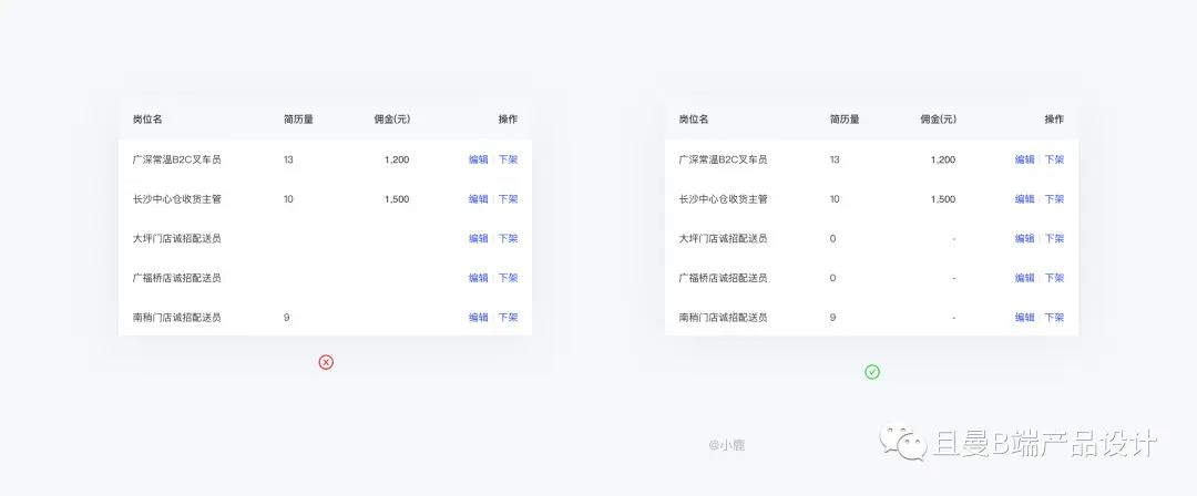 - 操作右对齐:操作即使没有纵向分割线也能很好的起到分隔的作用,视觉上看表格是一个方方正正的格子,比较整齐