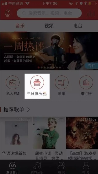 网易云音乐在用户生日时会变成「生日快乐」的蛋糕样式,点击进去的音乐列表,第一首歌是生日歌,让人心里暖暖的。