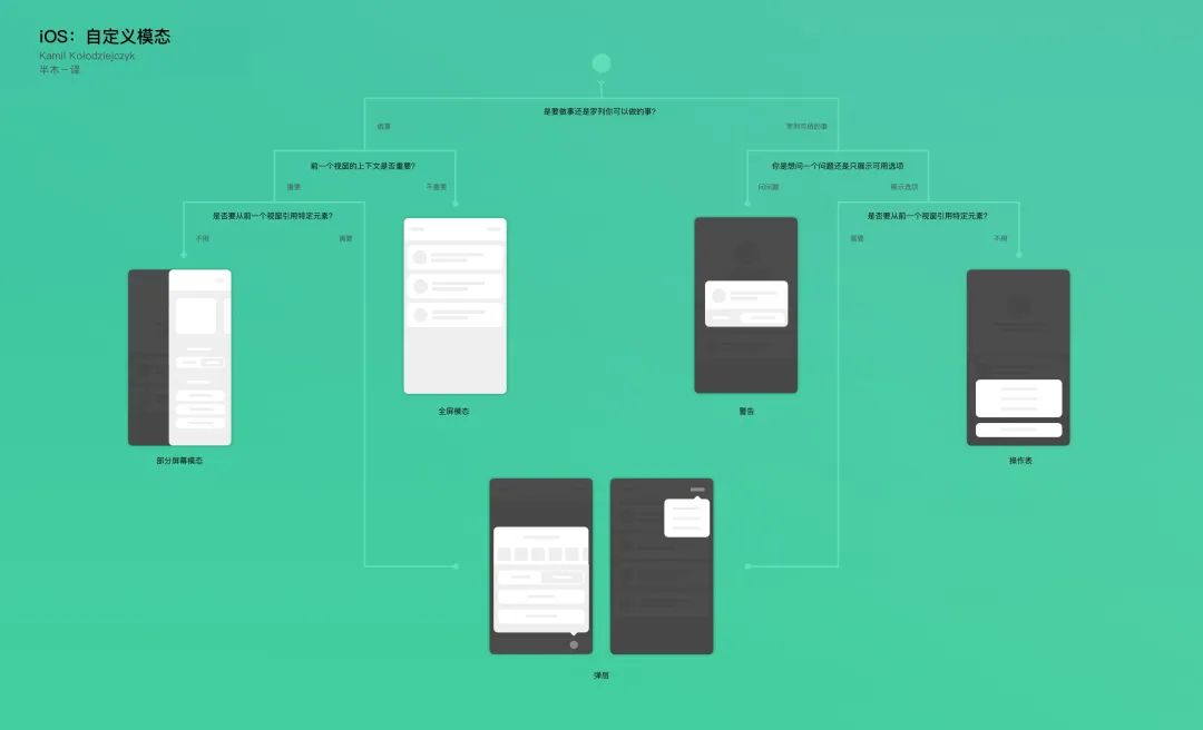 一张图总结几种模态弹窗的使用选择规律,使用规律并非绝对,仍需要在选择弹窗前根据业务目标和具体使用场景进行合理判断: