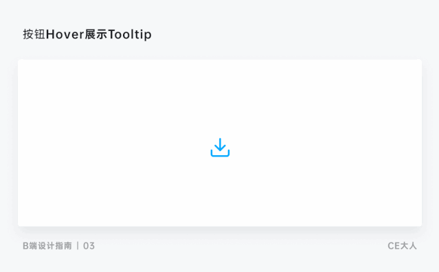 图标按钮为页面中空间占比最小的按钮,所以在页面中的使用也是最为高效的。因为没有了文字元素,会导致用户在图标的理解上出现偏差。为了解决这一问题,主要是通过用户在 Hover 时使用展示 Tooltip 提示按钮的含义,同时建议在图标按钮的使用上多为高频且易理解的图标。