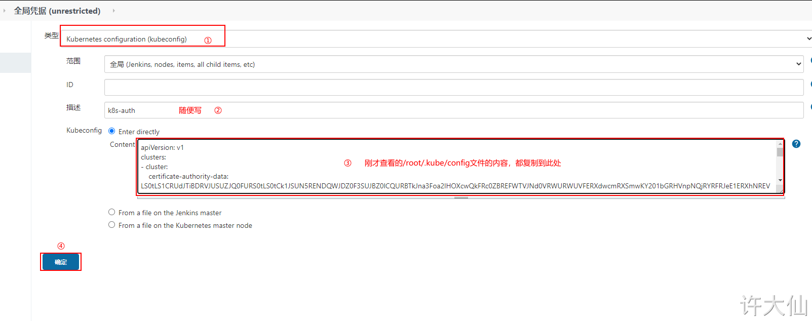 7.3.3 在Jenkins中新建kubernetes的凭证