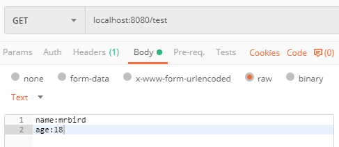 test1方法的参数没有被@RequestBody标注,启动项目,访问下面这个请求: