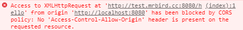 这是因为我们在http://localhost:8080/域名下试图访问http://test.mrbird.cc:8080下的hello接口,这就存在跨域问题,接下来我们来解决这个问题。