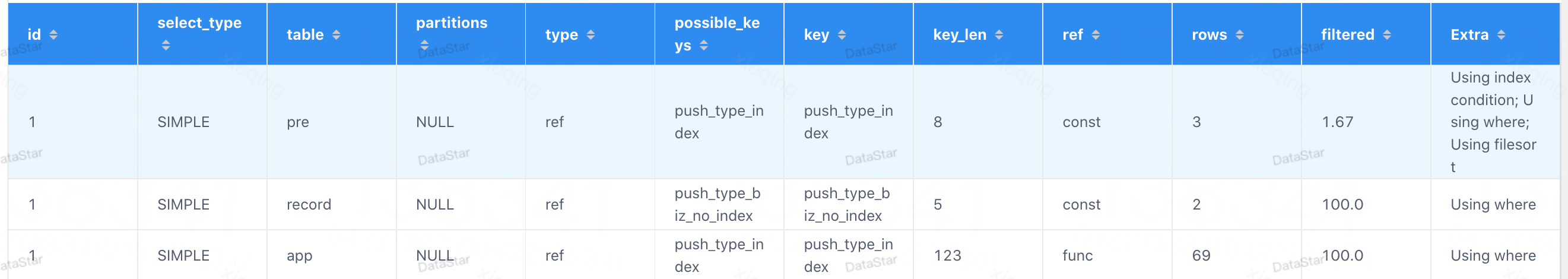 explainselectpre.push_type,pre.cnt as request_pv,pre.cnt_uv as request_uv,pre.date8,pre.type,record.cnt as send_pv,record.cnt_uv as send_uv,app.cnt as outer_click_pv,app.cnt_uv as outer_click_uvfrompush_manage_pre_flink_sql preleft join push_manage_record_flink_sql record on record.push_type = pre.push_type and record.date8 = pre.date8left join app_push_record_flink_sql app on app.push_type = record.push_type and record.date8 = app.date8wherepre.type = 3and pre.app_type = 1and pre.date8 >= 20220424and pre.date8 <= 20220425and pre.push_type in (60018808)ORDER BYpre.date8 desclimit0, 20
