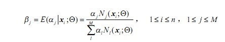 γjk^=∑γjkγjkp(γjk|yj,θ(i)k)=p(γjk=1|yj,θ(i)k)=p(γjk=1,yj|θ(i)k)∑kk=1p(γjk=1,yj|θ(i)k)=p(yj|γjk=1,θ(i)k)p(γjk=1,|θ(i))∑kk=1p(yj|γjk=1,θ(i)k)p(γjk=1,|θ(i))=akϕ(y|θ(i))∑kk=1akϕ(y|θ(i))