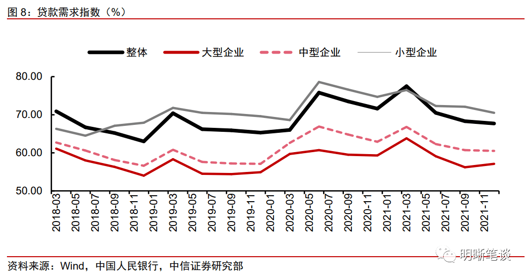 从新闻媒体报道的内容综合来看,预计1月信贷投放呈现“大行强、小行弱”的特征,西南地区以及小微企业的融资需求仍显不足。根据财联社星矿数据显示,1月获机构调研的7家上市银行多数表示,得益于项目储备较为充足,对公贷款投放情况优于上年同期水平,并计划于今年持续推进消费类贷款业务。然而,21世纪经济报道记者获悉,西南地区大多数企业的信贷需求不是很旺盛,华北地区客户基本可以维持存量但拓展比较少。此外,《中国证券报》采访发现,谈及冲刺信贷“开门红”的现状,多位业内人士感到压力较大,尤其是小微企业贷款,由于今年春节较早,很多企业已经放假,叠加疫情以及雨雪天气等原因,表现依然较为疲弱。为小微企业提供金融服务的多为当地中小型地方银行,从大型银行新增贷款复苏但中小银行仍处于下滑通道也可以看出,信贷结构分化的特征依然明显。