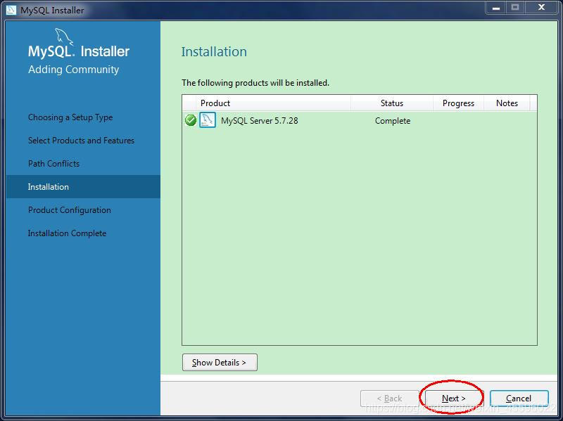 - 在左侧目录中选择MySQL Server 5.7.28 -X64,点击