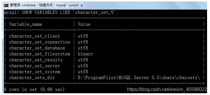 查看所有字符集:SHOW VARIABLES LIKE ‘characterset%’;