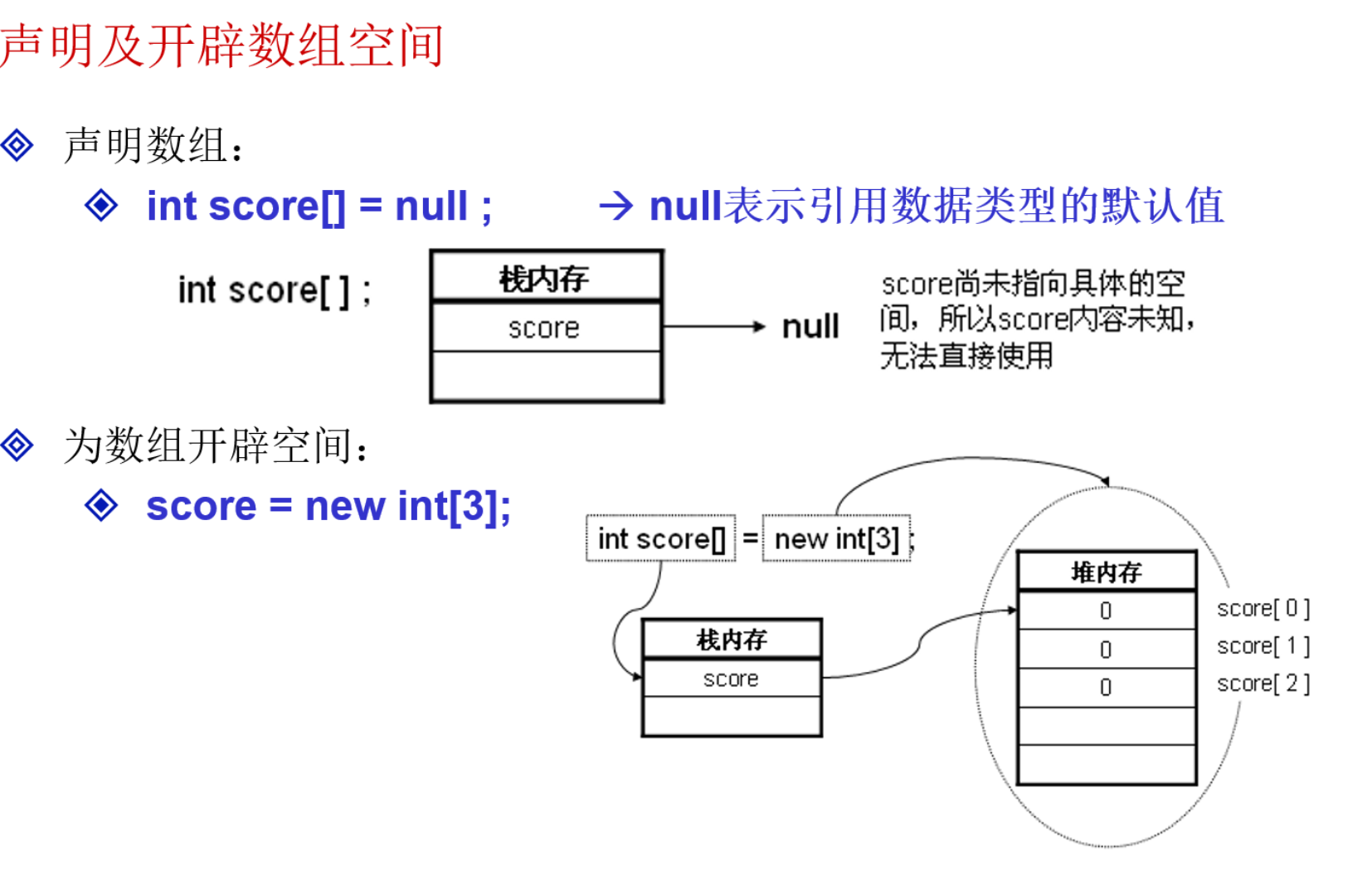 要使用Java的数组,必须经过两个步骤:(1)声明数组、(2)分配内存给该数组。