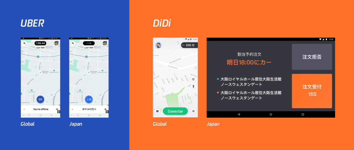 我们先来看个案例,这个是日本UBER司机端和日本滴滴司机端对比