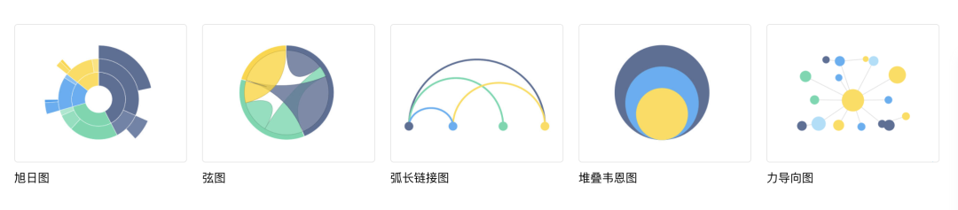 基于图表的类型可分为:饼图、线形图、柱状图、混合图、面积图、散点图、极坐标图、关系图、树图、桑基图、漏斗图、热力图、还有其他图表类型等。