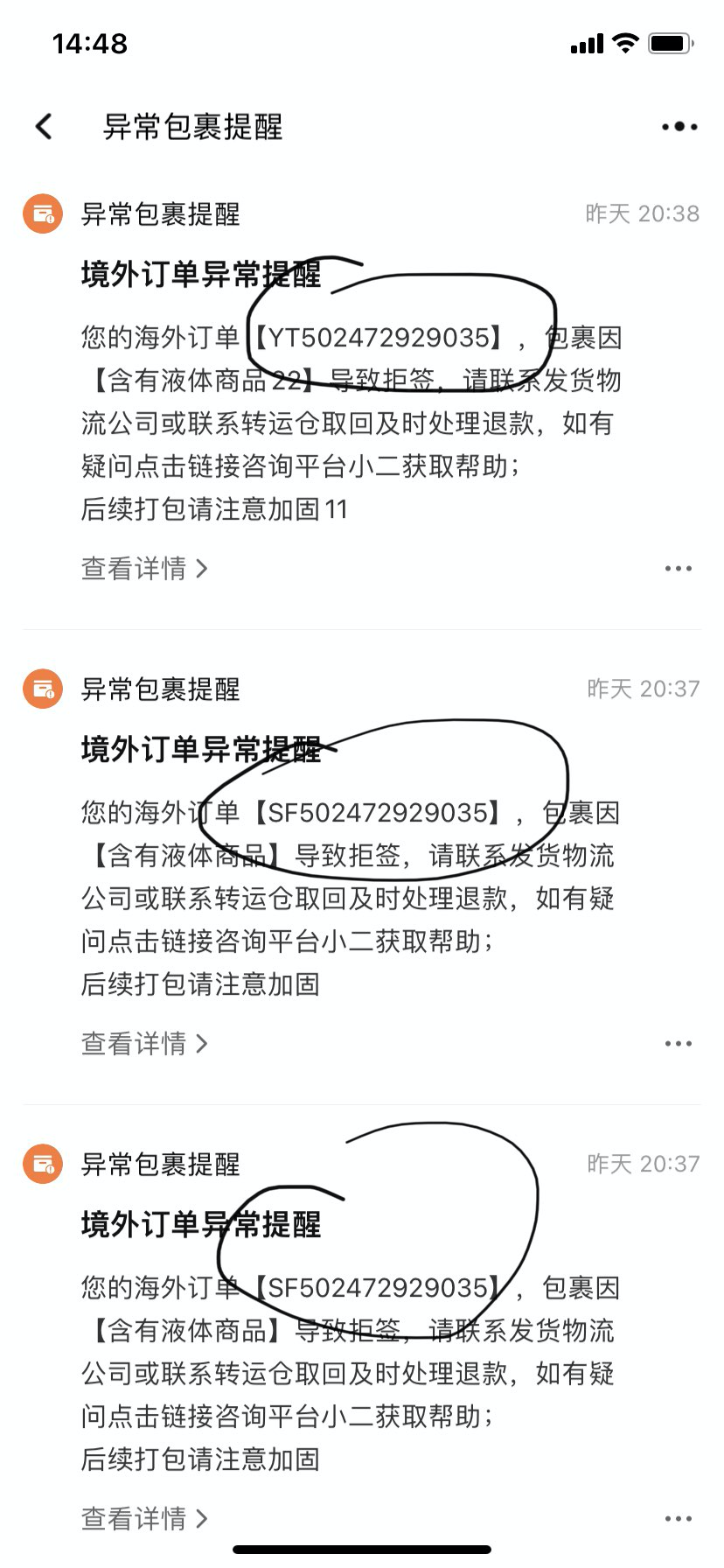 千牛消息全新上线转运仓拒签异常包裹提醒功能:商家朋友们可以根据包裹入仓的异常情况,第一时间接收到来自转运仓的拒签通知。您可以针对异常的包裹做如下处理:1)快速的锁定被转运仓拒签的包裹订单,联系一段物流公司确认包裹状态和尽快退回 2)协助消费者退款 3)查收转运仓发货规范,如有问题可以联系海外专属客服获得帮助:万象链接,[https://p.tb.cn/6Xa3vxEy2Uvc5SzttzhcCZ](https://p.tb.cn/6Xa3vxEy2Uvc5SzttzhcCZ)。<br /> 具体查询路径:千牛商家中心首页-右上角“消息”-“重要”消息-【境外订单异常包裹提醒】<br />如图:千牛商家中心首页<br /><br />如图:“重要”消息<br />