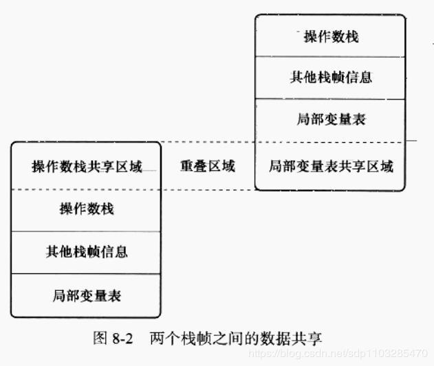 出于优化考虑,实现上会令两个栈帧出现一部分重叠,让下面栈帧的部分操作数栈与上面栈帧的部分局部变量表