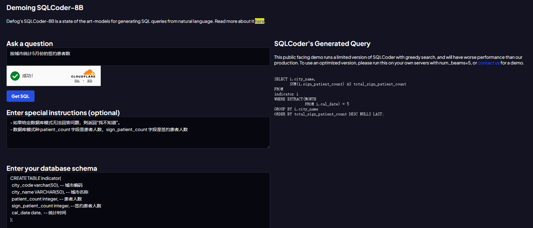 可本地部署,输出的为PGSQL语句,可通过SQL翻译工具转换为MySQL语句。