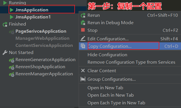 第三步:复制配置,修改端口,创建一个新的消费者: