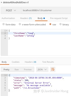 接着调用deleteAndSave接口,故意传入firstName=”Yang”,果然返回失败: